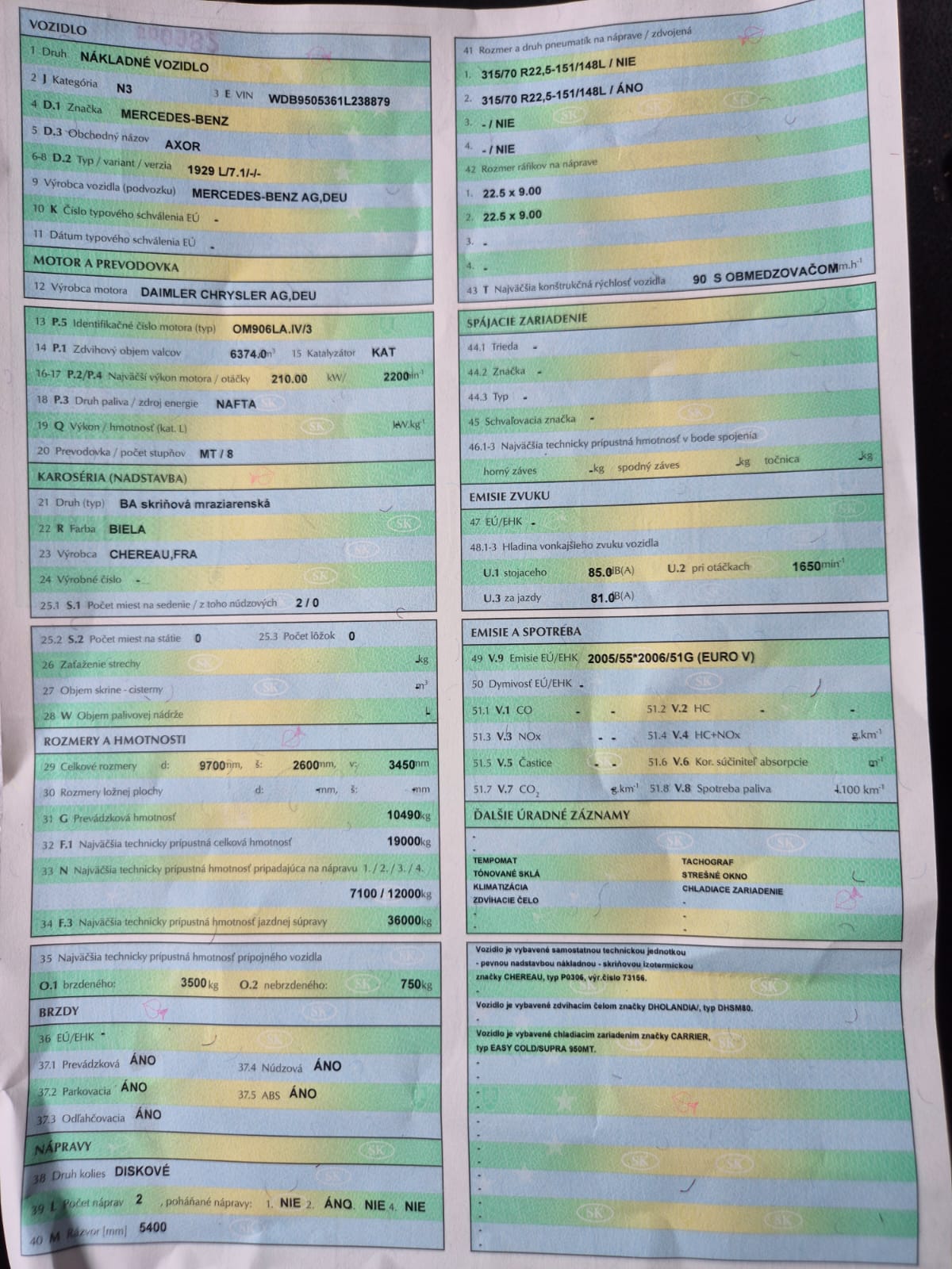 MERCEDES BENZ AXOR 1829 4X2 Chladák - Mrazák dvouvýparník, přepážka, čelo
